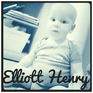8 Months!!! Its seems impossible that Elliott is already 8 months old. These months have flown by so quickly it's crazy. Elliott is such a happy and sweet boy. He smiles at EVERYTHING and his newest thing is waving his little arm at people. He has two teeth on the bottom row and crawls with ease throughout the house. He wants to touch and explore everything in his environment....I am trying my best to make our home a safe place for him and one thing I've done is made the lowest shelves in the living room his. He has his books, a toy, and a robot bucket. He will crawl over and select something to play with and I love watching him do this on his own. He loves being read to and even tries to read along. Some of his other favorite things right now are playing the keyboard with Uncle Stephen, practicing clapping his hands, putting everything he can find in his mouth to chew on with his new teeth, riding in his buggy, wearing his hat, and playing in the bathtub. He is also vocalizing so much. He babababas all day long, and always has something to say. 8 months!!!!